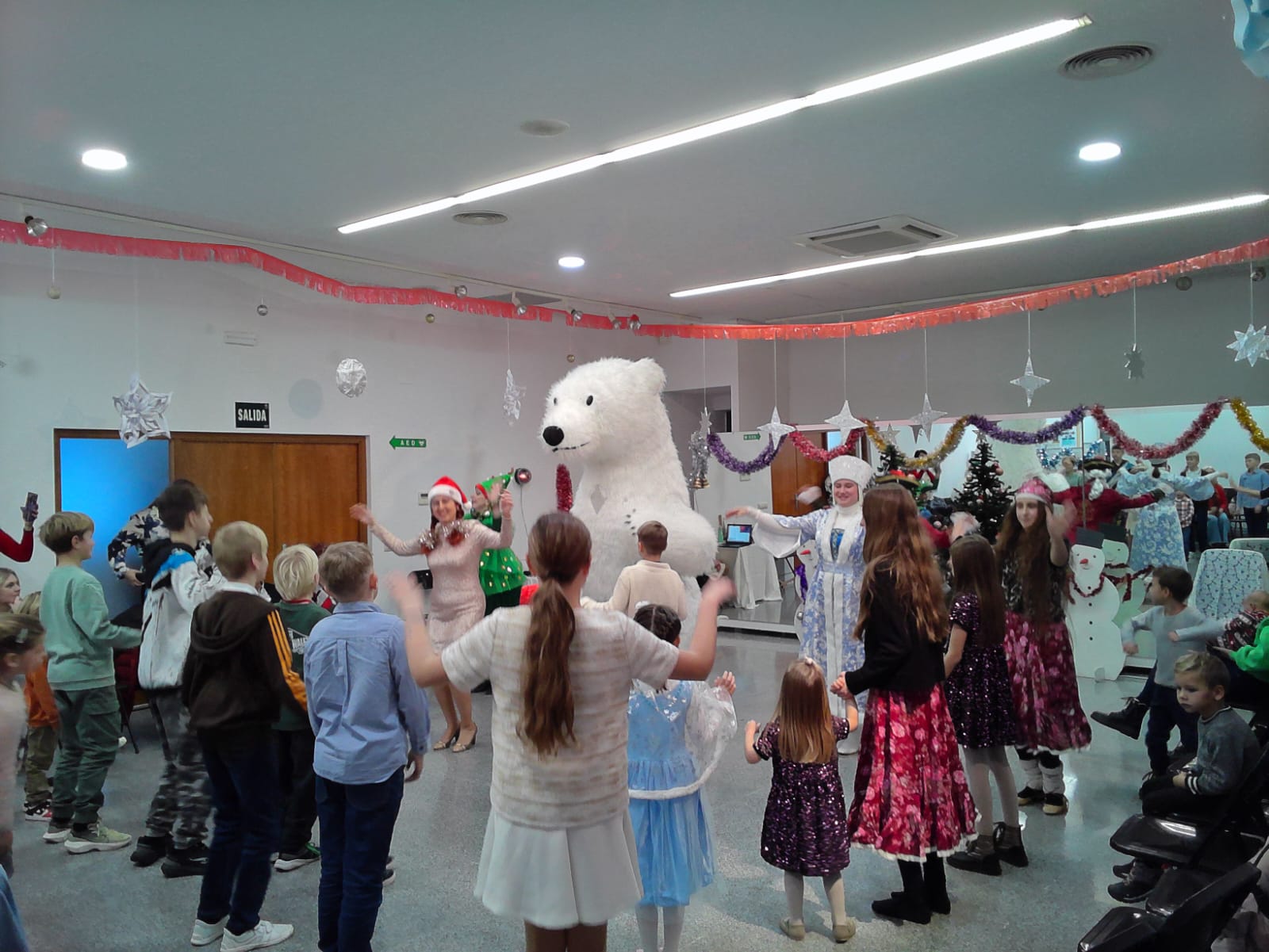 - Новогодняя Ёлка для детей и учеников школы "Теремок" "Как Баба Яга и барон Мунхаузен встречали Новый год". В гостях у ребят в г. Гандия побывал даже Белый Медведь. Огромный, умеющий танцевать и веселиться.
